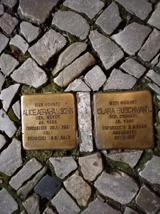 “Ein Mensch ist erst vergessen, wenn sein Name vergessen ist”, sagt der Aktionskünstler Gunter Demnig, von dem die Idee stammt, an Opfer des Holocaust dort zu erinnern, wo sie zuletzt gewohnt haben. Aus Beton gegossen und 10 x 10 cm groß, tragen seine Kleindenkmale eine Messingtafel mit dem Hinweis “Hier wohnte…”. Bündig ins Pflaster eingelassen, damit sie keine Gefahr darstellen, sorgen sie für ein „gedankliches Stolpern“. Demnig wurde er für sein Werk vielfach ausgezeichnet, unter anderem mit dem Verdienstkreuz am Bande der Bundesrepublik Deutschland.