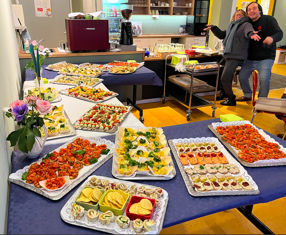 Für die Feier der Freiwillig Aktiven (FA) im Möckernkiez wurde in diesem Jahr das Buffet des Vereins vom Team des ‚Café Madame‘, Mehringplatz 10, geliefert.