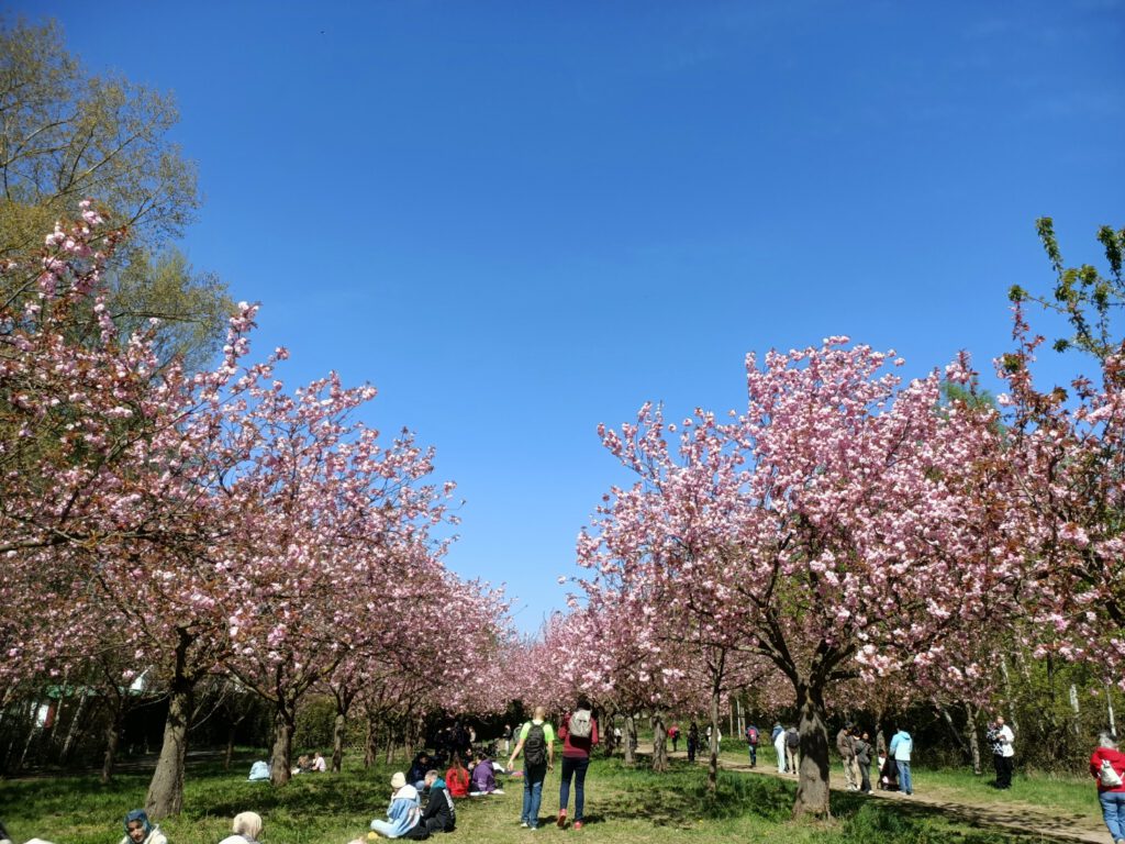 Die volle Kirschblüte erleben in Berlin, das geht an den verschiedensten Orten. Die meisten Bäume stehen in Lichterfelde Süd/Teltow, vor 30 Jahren wurden rund 1000 Kirschbäume gepflanzt, vom „Japanischen Volk“ aus Freude über die Wiedervereinigung Deutschlands.
