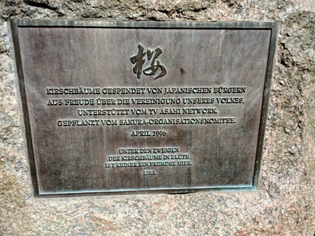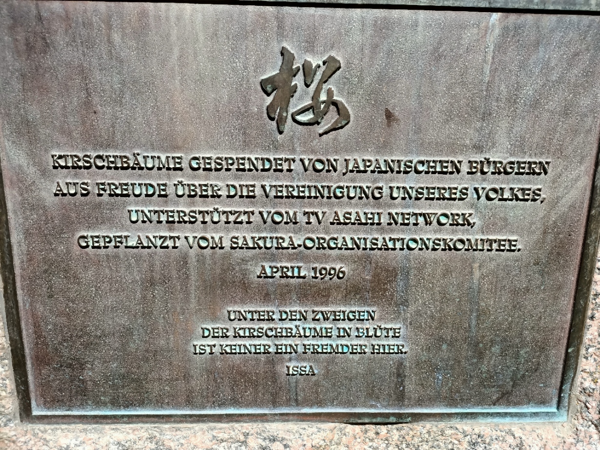 Die Kirschbaumallee heißt TV-Asahi-Kirschblütenalle, offenbar hat der japanische TV-Sender an der Pflanzaktion mitgewirkt.