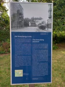 Im Umfeld unserer Möckernkiez-Genossenschaft lebten in früheren Zeiten nicht nur namhafte Persönlichkeiten, an die erinnert werden sollte. Auch historisch bedeutsame Standorte sind hier zu finden, z. B. an einem der Eingänge zum benachbarten Viktoriapark. An der Kreuzbergstraße 62, etwa 50 Meter neben der Villa Kreuzberg, befindet sich eine Gedenktafel zur Erinnerung an zwei epochemachende Urteile …
