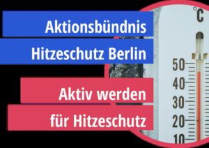 Der Verein KLUG e.V., Klima und Gesundheit, ist maßgeblich am Hitzeschutz in Berlin beteiligt. Bei KLUG arbeiten auch Ärzte aus dem Möckernkiez mit. Das Aktionsbündnis Hitzeschutz Berlin ist ein Zusammenschluss verschiedener Akteurinnen und Akteure des Berliner Gesundheitswesens. Ziel ist es, die Berlinerinnen und Berliner vor den Gesundheitsfolgen von Hitze zu schützen und die sektorenübergreifende Zusammenarbeit …