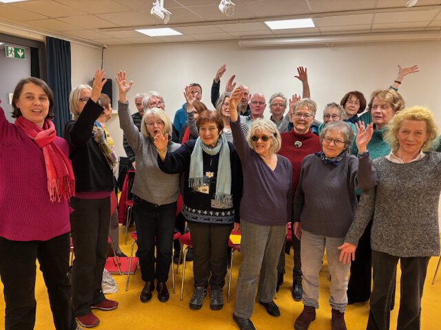 Unsere Chorleiterin ist seit April 2024 Elisabeth Tuchmann. Sie kommt aus dem Jazz, ist aber auch offen für andere Stilrichtungen und bringt uns ganz schön in Schwung.