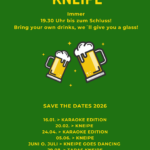Liebe alle, am Freitag ist es wieder so weit: KNEIPE im Möca! Dieses Mal in der wunderbaren Karaoke-Variante 🎤! Kommt ab 19.30 Uhr vorbei, singt mit und bringt neben euren Wunschgetränken gern auch einen kleinen Snack für die Runde mit. Einen Film für die Kids gibt’s natürlich auch wieder. Leitet diese Mail gern an eure Hausgruppe …
