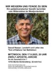 Einladung in die 12-Apostel-Kirche, zu einem Vortrag von Daoud Nassar, Landwirt bei Bethlehem: „Wir weigern uns Feinde zu sein! An der Apostelkirche 1 10783 Berlin-Schöneberg Artikel aus der Badischen Zeitung.